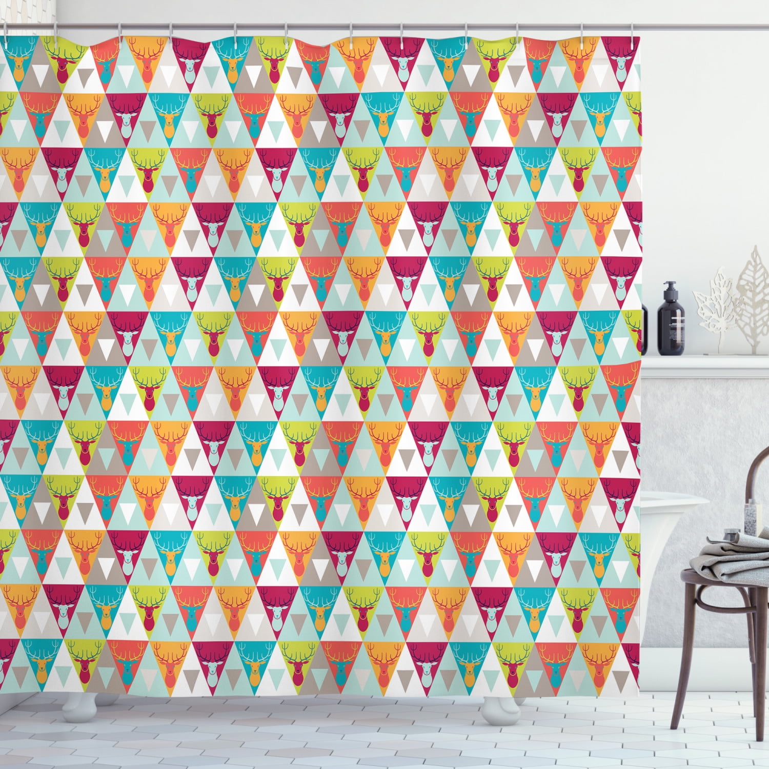 Indie Shower Curtain Triangles Pattern With Deer Elk Portraits Geometric Colorful Funky Hipster Tile Urban Fabric Bathroom Set With Hooks 69w X 70l Inches Multicolor By Ambesonne Walmart Com