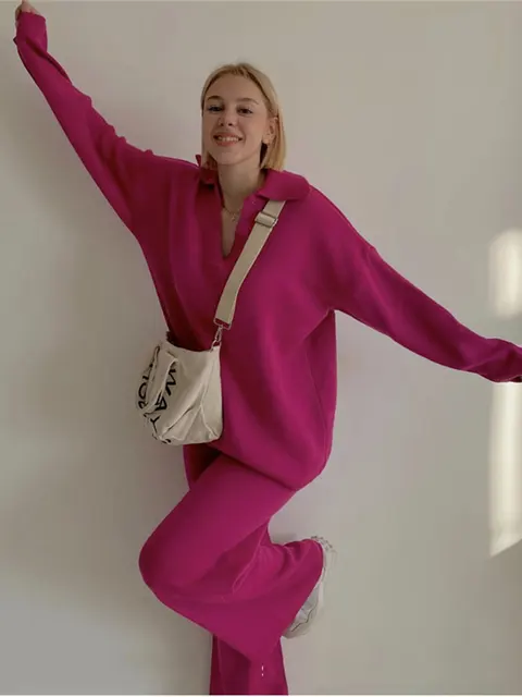 Two Piece Set Women Top And Pants 2024 Autumn Winter Solid Knit Sweater Sets Loose Wide Leg Pant Sets Womens Clothing Streetwear Aliexpress